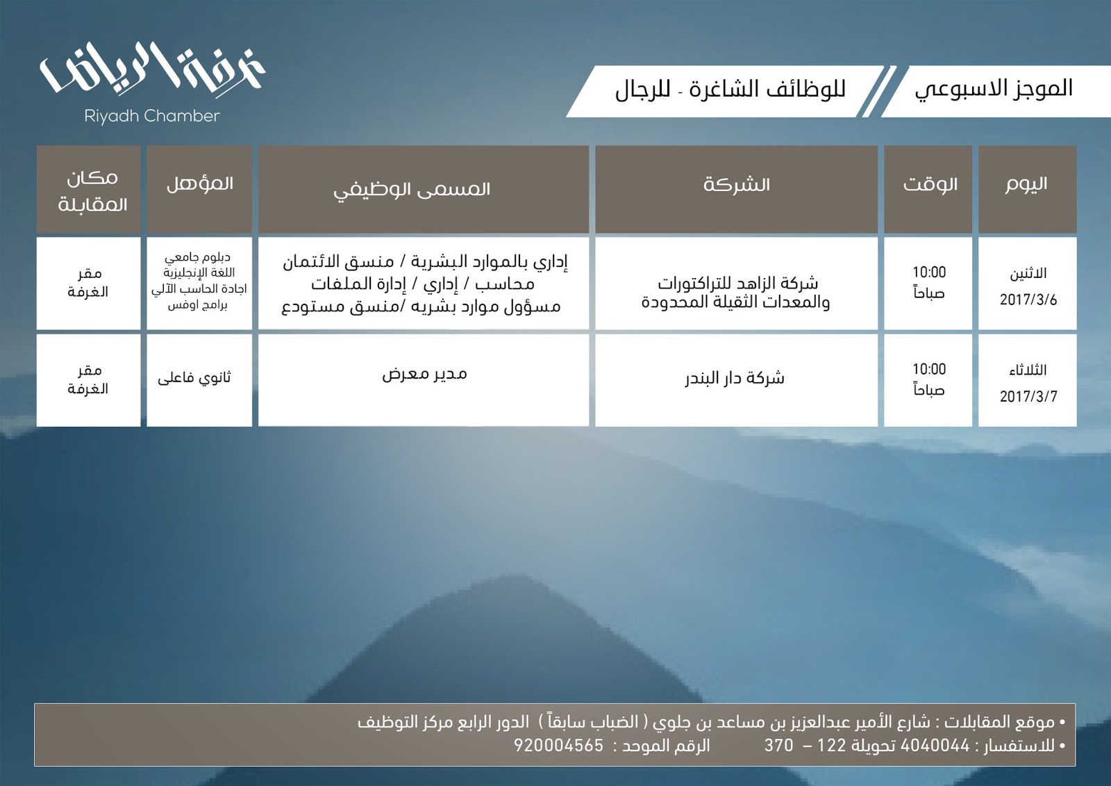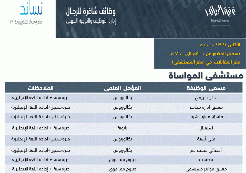 جميع وظائف غرفة الرياض الرجالية لهذا الاسبوع