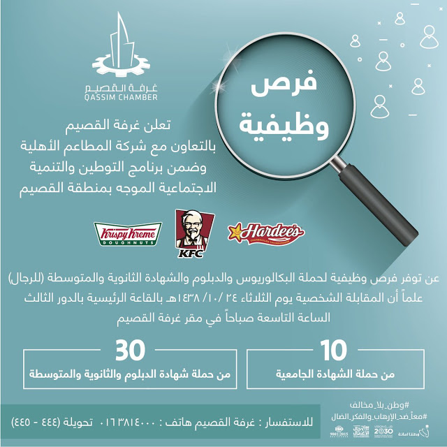 غرفة القصيم تطرح وظائف للجامعيين والثانوي والكفاءة المتوسطة