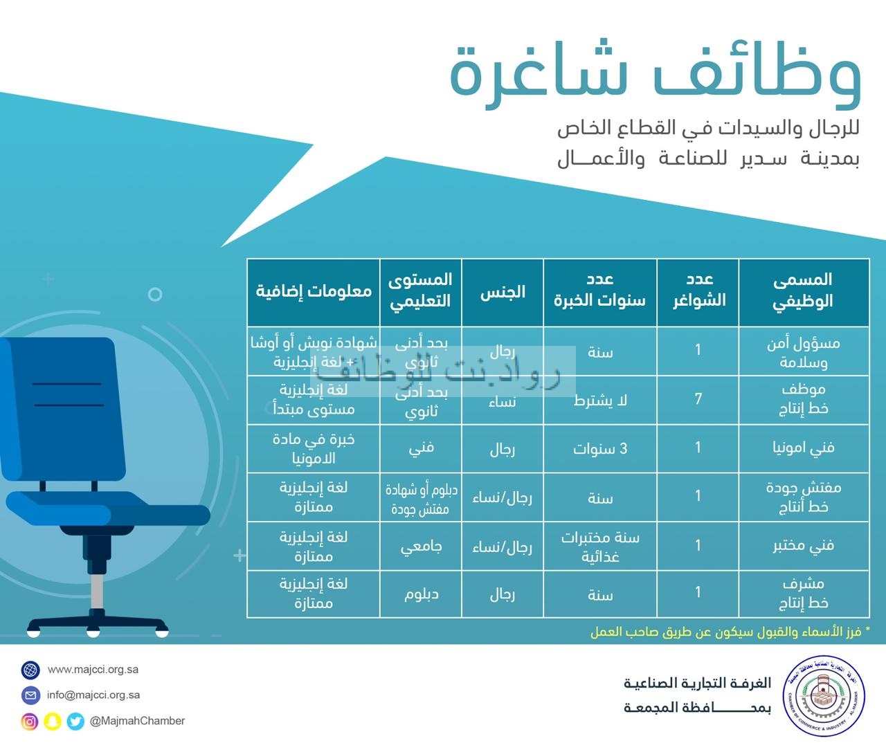 وظائف غرفة المجمعة 12 وظيفة نسائية ورجالية